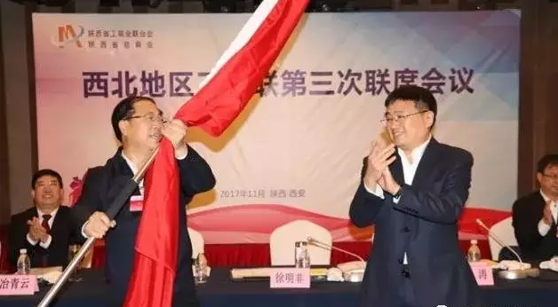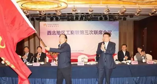 ▲陜西省工商聯(lián)與甘肅省工商聯(lián)交接會旗